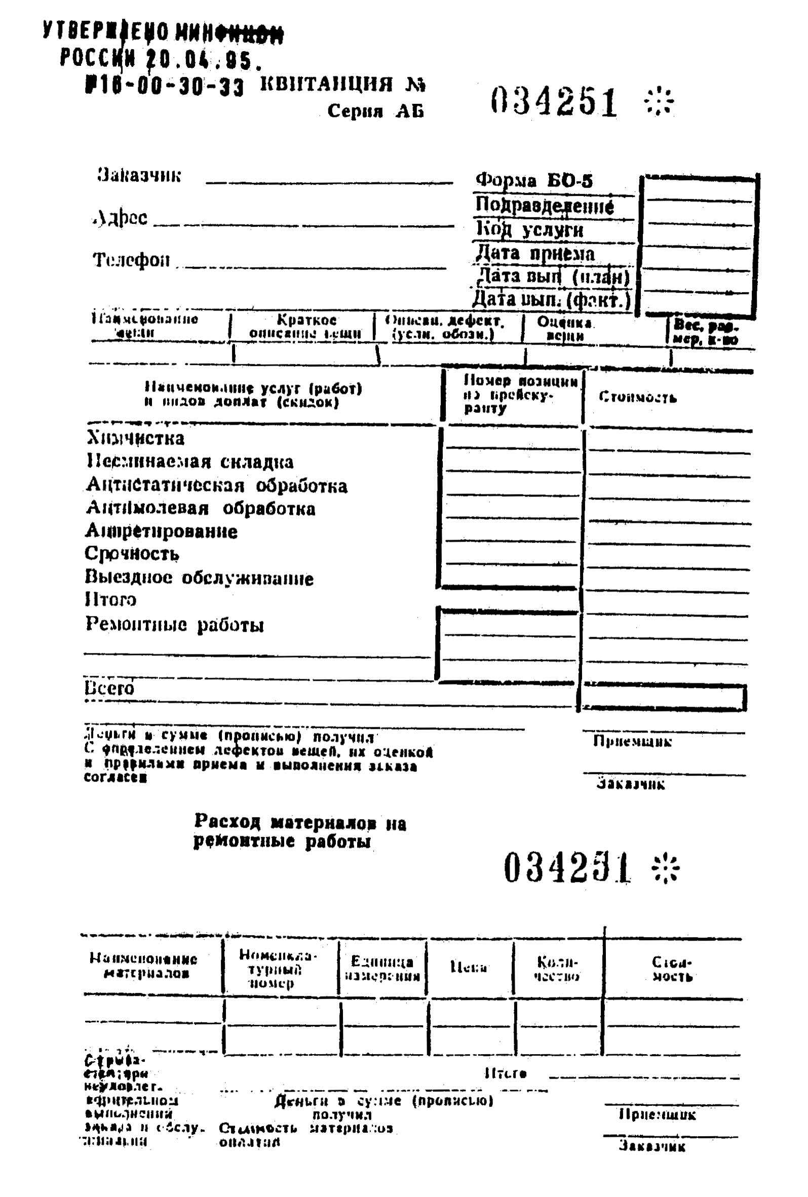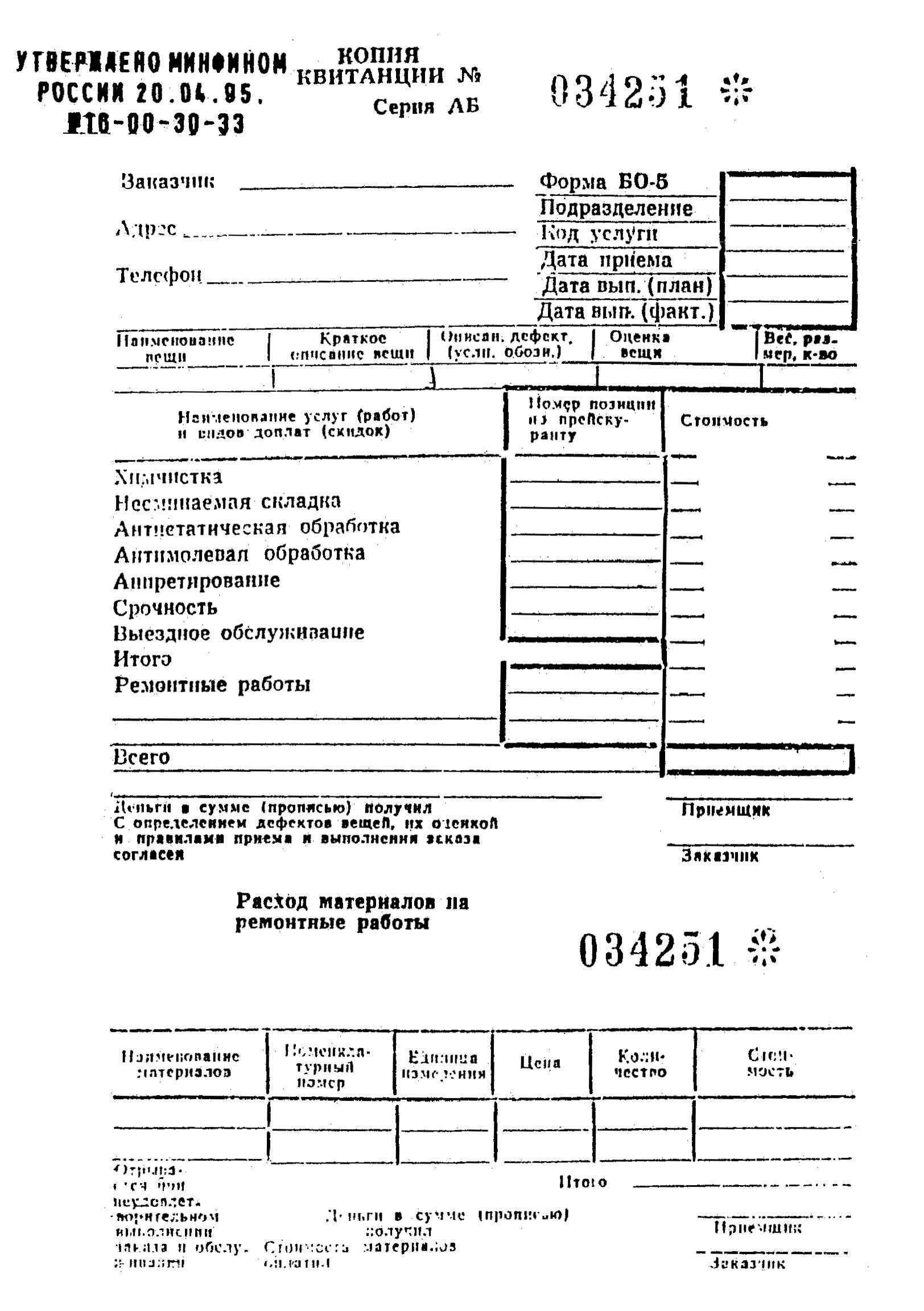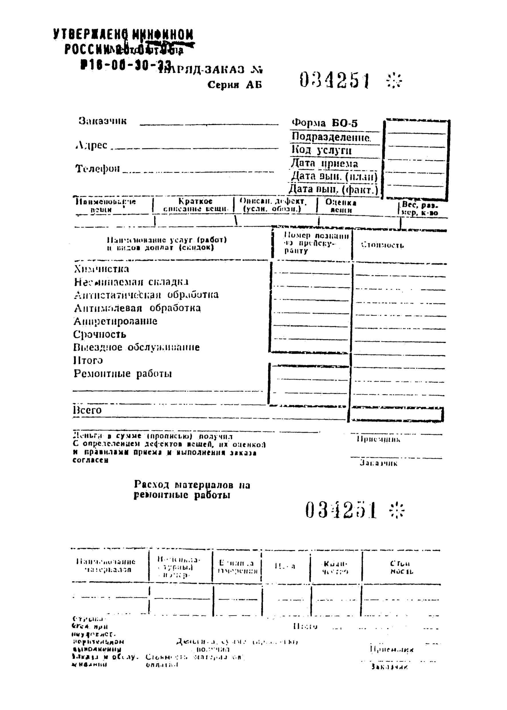 См. данный графический объект (Форма БО-5: НАРЯД-ЗАКАЗ, КВИТАНЦИЯ, КОПИЯ КВИТАНЦИИ).